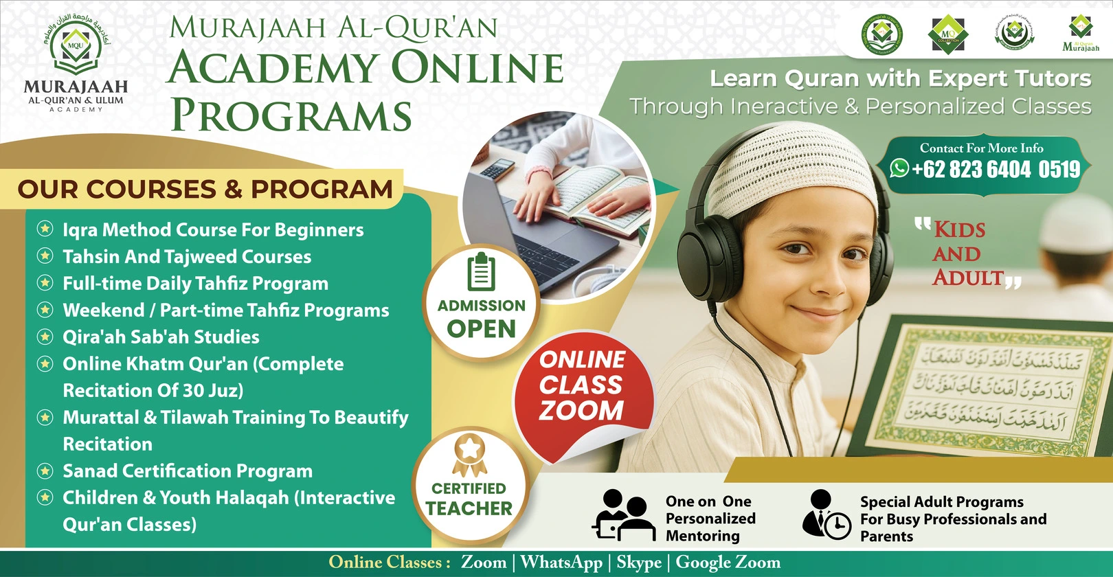 Murajaah Al-Qur'an Academy Online is a dedicated online platform designed to help you achieve your memorization goals and perfect your recitation of the Qur'an. We provide a structured learning environment supported by professional, certified teachers.